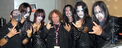 Dani Azathonian Hands (drums), Su-Nung the Bloody String (hena), Doris Thunder Tears (bass), fan Ken Pierce of Piercing Metal, Freddy the Left Face of Maradou (vocals), CJ Dispersed Fingers (keyboards) and Jesse the Infernal (guitar) after a show in New York City.