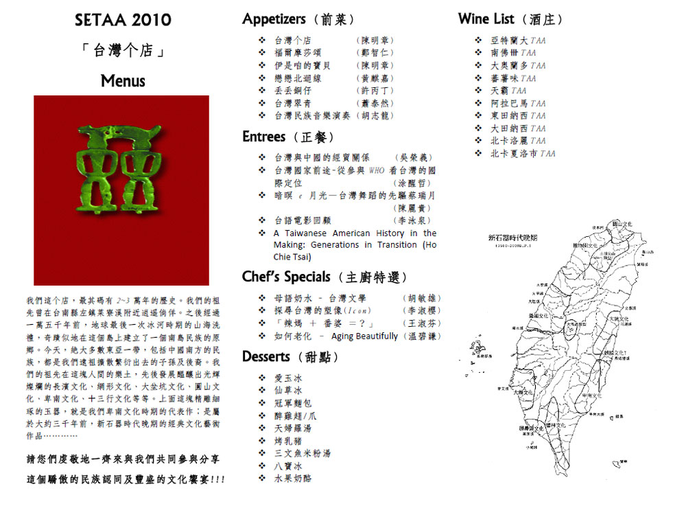 Hello friends and supporters of TaiwaneseAmerican.org! I’ll be speaking at several conferences this 2010 summer season, and I hope you’ll be able to join me on this journey to connect community and generations. Read this announcement by SETAA conference organizer, Shu-Chuan Chou, for more information! I look forward to meeting you! — Ho Chie Tsai, the creator of TaiwaneseAmerican.org