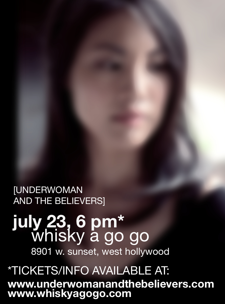 Visit www.underwomanandthebelievers.com to buy your ticket! Be sure to buy your ticket from that site directly, (not the Whisky A Go Go website or door) so that Underwoman and the Believers will get the “credit.” Once you make your purchase, your ticket will be at the Will Call window for pick-up.
