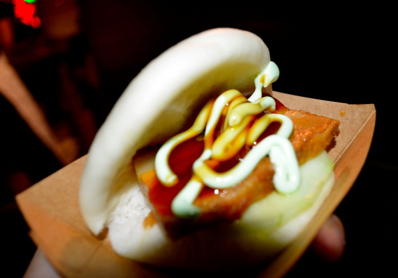 People tended to crowd toward the savory: fried chicken from Taicken, pot stickers from A-Pou’s Taste Cart, succulent sausages from Passport 2 Taiwan, and, of course, the baos, which were being served up by both Hong Kong Street Cart and Fun Buns NYC.