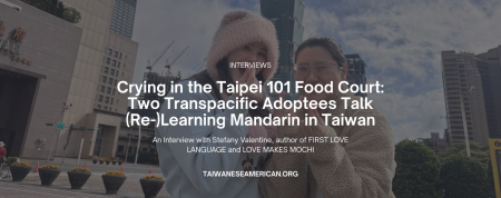 We hadn’t meant to cry in the food court below Taipei — and during a Saturday lunch rush hour at that.  Author Stefany Valentine and I connected online in 2024 before she published her debut novel, First Love Language. As Asian American adoptees — her being Taiwanese American and me being Chinese American living in Taiwan — we bonded quickly over Taiwan and our longing for adoptee representation in young adult books.  Fast forward one year and suddenly we were meeting in person…